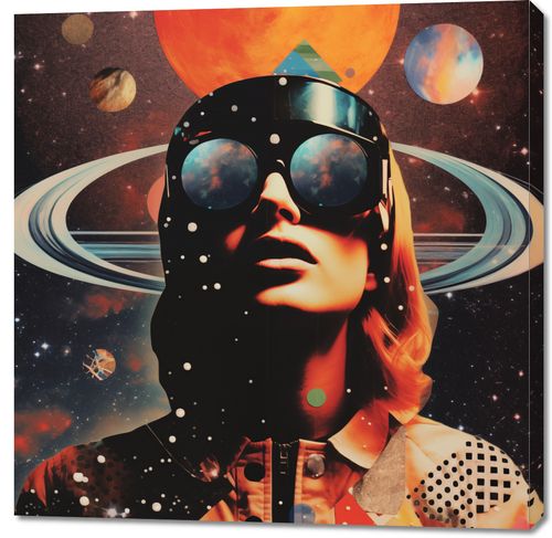 Obraz z serii pop art zatytułowany Kosmiczne Wizje. Ta odważna i wizjonerska grafika łączy w sobie ikonę mody z elementami uniwersum kosmicznego, tworząc surrealistyczny portret kobiety, której twarz i ciało przenikają się z gwiazdami, planetami i galaktykami. Okulary odbijające kosmos i pierścienie Saturna otaczające głowę dodają obrazowi elementów fantastyki naukowej. Obraz przyciąga uwagę i inspiruje, stanowiąc idealny wybór dla tych, którzy cenią sobie oryginalność i kosmiczne motywy, doskonale nadaje się do nowoczesnych salonów, młodzieżowych pokojów czy przestrzeni artystycznych.