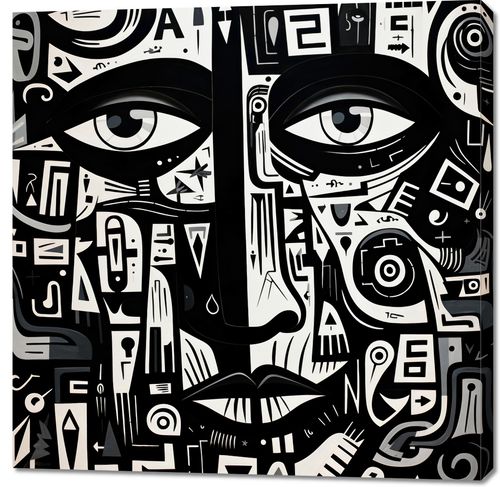 Obraz z serii abstrakcja zatytułowany Labirynt Myśli. Intrygujące oczy spoglądające z głębi obrazu są otoczone złożonymi wzorami i symbolami, które łączą się, tworząc enigmatyczny portret. Czarno-białe barwy kontrastują ze sobą, dodając dziełu intensywności i głębi. Złożoność wzorów symbolizuje skomplikowane myśli i emocje, które kryją się za ludzkim spojrzeniem. Świetnie sprawdzi się w nowoczesnych biurach, galeriach sztuki oraz w przestrzeniach przeznaczonych dla miłośników abstrakcyjnej ekspresji.