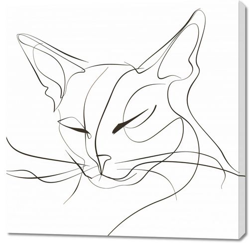 Plakat z serii wnętrza zatytułowany Linijny Kot. Prezentuje minimalistyczny, jednoliniowy rysunek kota. Sylwetka zwierzęcia została zredukowana do kilku płynnych linii, które z gracją oddają kształt głowy, uszu i rysy twarzy, w tym oczy i nos. Styl ten jest znany z tego, że w elegancki sposób uchwyci esencję swojego przedmiotu przy minimalnym użyciu detali. Tło obrazu jest czyste i jasne, co pozwala zarysom kota stać się dominującym elementem. Ten rodzaj sztuki idealnie nadawałby się do nowoczesnego wnętrza, które ceni sobie elegancję i prostotę, i może przyciągać wzrok jako subtelny, ale wyrafinowany element dekoracyjny.