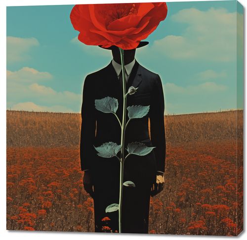 Obraz z serii abstrakcja zatytułowany Obserwator zza Maku. Ten obraz przedstawia surrealistyczny obraz człowieka z głową w formie rozkwitającego czerwonego maku, stojącego na polu pełnym kwiatów tej samej rośliny. Kompozycja gra na kontraście między ludzką postacią a bujnością natury, podkreślając połączenie człowieka z otaczającym go światem. Idealny dla przestrzeni szukających głębi artystycznej i wizualnej prowokacji, ten plakat będzie doskonałym dodatkiem do nowoczesnych salonów, galerii sztuki czy przestrzeni kreatywnych, gdzie może inspirować i wywoływać refleksję.