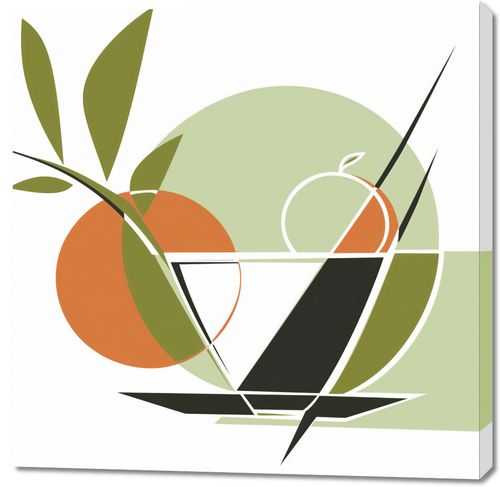 Obraz z serii minimalistyczne zatytułowany Owocowa Herbata. Prezentuje on wyrafinowaną grę form i kształtów, które przywodzą na myśl świeżość i soczystość owoców. Gładkie krzywizny i ostre linie łączą się tworząc nowoczesną kompozycję w palety kolorów zieleni, pomarańczy oraz czerni na delikatnym tle. Obraz ten doskonale wpasuje się w jasne kuchenne wnętrza, jadalnie lub nowoczesne przestrzenie kawiarniane, gdzie może stanowić żywy i pobudzający akcent. Jest to również idealny wybór do wnętrz, które poszukują lekkiego, ale wyrazistego elementu dekoracyjnego, dodającego charakteru i żywego ducha natury.