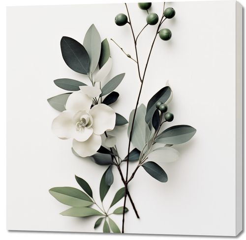 Obraz z serii wnętrza zatytułowany Papierowy Kwiat. Ten obraz przedstawia delikatną kompozycję wykonaną z papieru, która odwzorowuje naturę z zadziwiającą dokładnością. Wykwintna papierowa magnolia w towarzystwie subtelnego listowia i jagód, wszystkie w spokojnych, pastelowych tonach, tworzą obraz pełen elegancji i delikatności. Idealny dla przestrzeni, które cenią sobie minimalizm i spokój, jak skandynawskie wnętrza, pracownie projektowe czy przestrzenie relaksacyjne, gdzie taka forma sztuki może wprowadzić wyciszającą atmosferę i dodać wnętrzu subtelnej, artystycznej nuty.