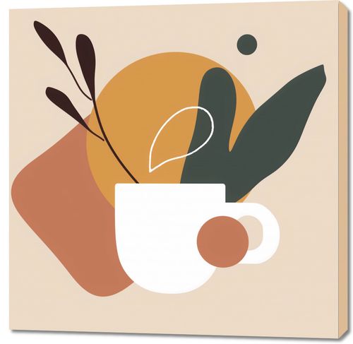 Obraz z serii minimalistyczne zatytułowany Ranna Kawka. Ta grafika to subtelne połączenie codziennego przedmiotu – kubka kawy – z abstrakcyjnymi elementami i roślinnymi motywami, co razem tworzy ciepłą i przyjemną kompozycję w odcieniach ochry, brązu i zieleni. Przenikające się kształty i delikatne linie nadają pracom niemal zenową jakość. Obraz ten doskonale uzupełni przestrzeń kuchenną, jadalnię lub domową kawiarnię, wprowadzając element spokoju i przytulności do porannego rytuału. Może także dodać ciepła i domowego charakteru do biur, zapewniając relaksującą atmosferę.