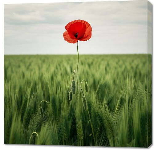 Obraz z serii natura zatytułowany Samotny Mak na Polu. Ten obraz ukazuje jaskrawoczerwony kwiat maku, który delikatnie wyróżnia się na tle zielonego, kołyszącego się pola zboża pod rozległym, błękitnym niebem. Ujęcie to podkreśla piękno i siłę, jaką natura wyraża nawet przez pojedynczy, wyjątkowy element. Idealny dla każdego wnętrza, w którym pragnie się wprowadzić elementy natury, ten obraz jest doskonałym wyborem dla przestrzeni, które szukają spokoju i naturalnej elegancji, takich jak domowe biura, salony, czy nawet jako odświeżający akcent w miejskich kawiarniach