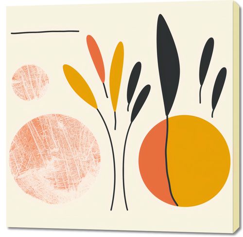 Obraz z serii boho zatytułowany Słoneczne Refleksy.Obraz czerpie z esencji natury i prostoty, przedstawiając stonowane, ale zarazem żywe kształty i linie roślin. Geometryczne kształty w ciepłej palecie barw - od głębokiego pomarańczu do delikatnego żółcienia - są wyróżnione na tle stonowanego beżu, tworząc wrażenie słońca i jego łagodnego światła rozpraszającego się w naturze. Dzieło to będzie pięknie komponować się z jasnymi, przestronnymi wnętrzami, wnosząc do nich poczucie ciepła i optymizmu. Idealnie nadaje się do dekoracji ściennej w salonach, jadalniach lub przestrzeniach oczekujących, gdzie może dodać odrobinę życia bez dominowania nad całością aranżacji. Zapewni lekki, ale wyrazisty akcent, który może inspirować i przynieść radość każdego dnia.