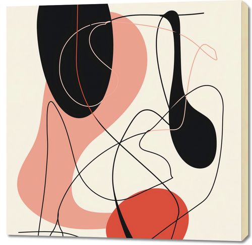 Obraz z serii minimalistyczne zatytułowany Wibracje Abstrakcji. Jest to dzieło, które przyciąga uwagę swoją dynamiczną kompozycją złożoną z płynnych linii i zdecydowanych plam koloru. Czarny i biały balansują na tle łagodnych czerwieni i różu, tworząc efekt wizualnego napięcia i ruchu. Zawikłane linie przypominają spontaniczne rysunki strun, które wibrują, nadając rytm całej kompozycji.Obraz ten idealnie wpasuje się w nowoczesne, urbanistyczne przestrzenie, gdzie może stanowić śmiałe oświadczenie. Doskonale uzupełni minimalistyczne biuro, elegancką galerię, lub stanowić centrum uwagi w modnym salonie. To dzieło dla tych, którzy cenią sobie abstrakcję i chcą dodać swojemu otoczeniu odrobinę artystycznego zacięcia.
