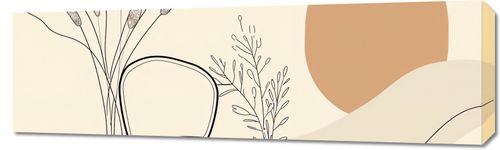Obraz z serii boho zatytułowany Kącik Spokoju. Obraz prezentuje delikatny, linearny rysunek wnętrza, gdzie w centrum znajduje się eleganckie krzesło umieszczone obok stolika z wazonem i wysokimi, smukłymi roślinami. W tle, duża, okrągła forma w ciepłym, terra-cotta kolorze nadaje całości miękkiego, przytulnego charakteru. Linearna, subtelna paleta barw oraz gra cieni i światła tworzy atmosferę relaksu i wyciszenia. Ten obraz będzie doskonałym wyborem do dekoracji wnętrza, które ma być przestrzenią do odpoczynku i regeneracji. Jego prostota i elegancja sprawią, że doskonale odnajdzie się w salonach, pokojach do czytania, gabinetach czy medytacyjnych kącikach, wprowadzając spokojny i zbalansowany nastrój.