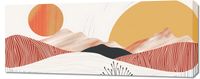 Obraz z serii boho zatytułowany Roztańczone Słońce. Obraz przedstawia abstrakcyjny pejzaż, w którym harmonia form i kolorów tworzy obraz pełen spokoju i równowagi. Jego głównymi elementami są stylizowane wzgórza, które płynnie przechodzą w miękkie linie, oraz dwa słońca, które swymi barwami ożywiają całą kompozycję. Delikatna roślinność w przedniej części dodaje głębi i tekstury, a zabawa cieniem i światłem wydobywa z obrazu uczucie ciepła.Ten obraz będzie doskonałym dodatkiem do wnętrz, gdzie pragnie się stworzyć atmosferę spokoju i odpoczynku, takich jak salony, gabinety lub pokoje gościnne. Jego subtelne barwy i proste formy wprowadzą do każdej przestrzeni odrobinę natury i ciepła.