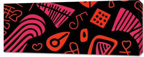 Obraz z serii abstrakcja zatytułowany Rytm Wzorów - pulsujące, energetyczne dzieło sztuki, które łączy w sobie abstrakcyjne kształty i wibrujące kolory na ciemnym tle. Wzory są zainspirowane żywiołowością muzyki i miejskiego życia, z nutami, sercami i innymi elementami graficznymi, które tworzą rytmiczny i wizualnie hałaśliwy krajobraz. Intensywne czerwienie i różowe akcenty kontrastują z głęboką czernią, nadając plakatowi wyrazistość i mocny charakter. To idealny wybór do nowoczesnych przestrzeni, które celebrują kreatywność i dynamiczność, takich jak studia projektowe, muzyczne bary czy urbanistyczne lofoty.