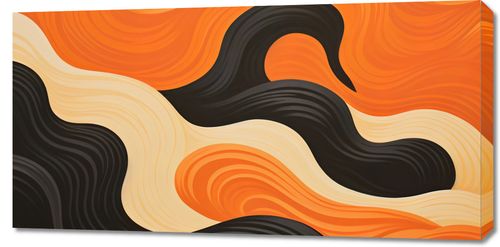 Obraz z serii abstrakcja zatytułowany Dzień spotyka Noc. Falujące wzory przypominają o zachodach słońca na horyzoncie, gdzie słońce zanika za krętą linią nocy. Wzory w odcieniach pomarańczu i złota ścierają się z głęboką czernią, tworząc harmonijną grę świateł i cieni. Te przenikające się kolory dodają obrazowi energii i dynamiki, prowadząc nas przez krajobraz zmieniającego się dnia. Kontrast pomiędzy ciepłymi i chłodnymi tonami przyciąga wzrok i wciąga w głąb kompozycji. Idealny dla nowoczesnych kawiarni, artystycznych przestrzeni oraz domowych salonów pragnących wprowadzić nutę spokoju i refleksji.