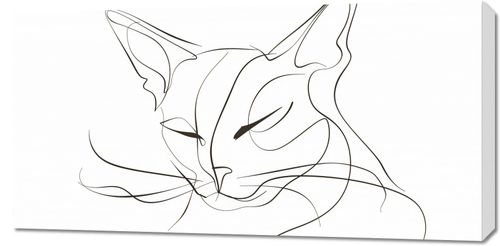Plakat z serii wnętrza zatytułowany Linijny Kot. Prezentuje minimalistyczny, jednoliniowy rysunek kota. Sylwetka zwierzęcia została zredukowana do kilku płynnych linii, które z gracją oddają kształt głowy, uszu i rysy twarzy, w tym oczy i nos. Styl ten jest znany z tego, że w elegancki sposób uchwyci esencję swojego przedmiotu przy minimalnym użyciu detali. Tło obrazu jest czyste i jasne, co pozwala zarysom kota stać się dominującym elementem. Ten rodzaj sztuki idealnie nadawałby się do nowoczesnego wnętrza, które ceni sobie elegancję i prostotę, i może przyciągać wzrok jako subtelny, ale wyrafinowany element dekoracyjny.