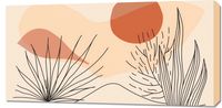 Obraz z serii boho zatytułowany Miękka Roślinność. Obraz przedstawia proste, lecz eleganckie rośliny pustynne na tle abstrakcyjnych, miękkich form i kolorów. Całość kompozycji opiera się na spokojnych odcieniach beżu, brązu oraz głębokiego terrakoty, co przywodzi na myśl ciepło i suchość pustynnego krajobrazu. Ten obraz świetnie sprawdzi się w wnętrzach o neutralnej kolorystyce, dodając im charakteru i ciepła. Idealnie nadaje się do salonu, przestrzeni wypoczynkowych lub biura, gdzie wprowadzi elementy natury i harmonii.