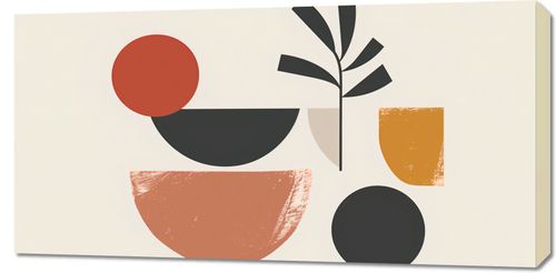 Obraz z serii boho zatytułopwany Ogród Woli.Obraz jest abstrakcyjnym przedstawieniem ogrodu, gdzie geometryczne formy i roślinne motywy łączą się w harmonijną całość. Proste kształty w odcieniach czerwieni, czerni i beżu odzwierciedlają naturalne elementy, takie jak kwiaty i słońce, a czyste linie roślinnych sylwetek wprowadzają do kompozycji żywiołowość i dynamikę. To dzieło świetnie wkomponuje się w nowoczesne, jak i tradycyjne przestrzenie, wprowadzając żywioł natury w uporządkowaną, estetyczną formę. Idealnie nadaje się do salonów, gabinetów czy pokoi relaksacyjnych, gdzie jego ciepłe barwy i proste formy mogą stworzyć inspirujące otoczenie dla odpoczynku i kreatywności.