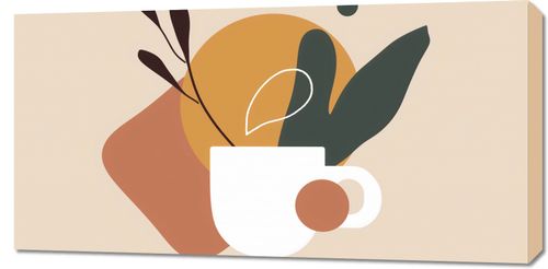 Obraz z serii minimalistyczne zatytułowany Ranna Kawka. Ta grafika to subtelne połączenie codziennego przedmiotu – kubka kawy – z abstrakcyjnymi elementami i roślinnymi motywami, co razem tworzy ciepłą i przyjemną kompozycję w odcieniach ochry, brązu i zieleni. Przenikające się kształty i delikatne linie nadają pracom niemal zenową jakość. Obraz ten doskonale uzupełni przestrzeń kuchenną, jadalnię lub domową kawiarnię, wprowadzając element spokoju i przytulności do porannego rytuału. Może także dodać ciepła i domowego charakteru do biur, zapewniając relaksującą atmosferę.