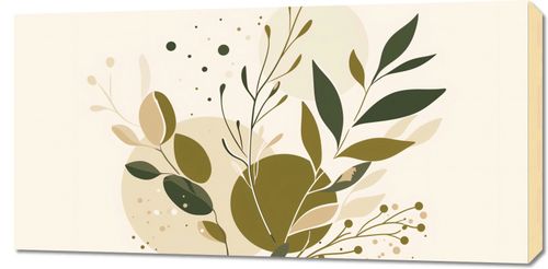 Obraz z serii minimalistyczne zatytułowany Szronowata Barwa. Przedstawia on delikatną kompozycję liści i gałązek w tonacjach zieleni i beżu, na łagodnym tle w pastelowych barwach, z dyskretnymi kropeczkami przypominającymi spokojny deszcz dodając elementu kontemplacji. Ten obraz wprowadzi harmonię i delikatność do każdego pomieszczenia. Jego stonowane kolory i prosta forma doskonale odnajdą się w przestronnych i jasnych wnętrzach, takich jak skandynawskie mieszkania, biura, czy salony spa.