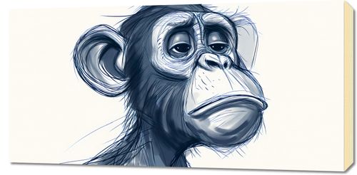 Obraz z serii wnętrza zatytułowany Zaduma. Prezentuje wyrazisty, monochromatyczny portret małpy z wyjątkowo ludzkim wyrazem twarzy, który wyraża głęboką refleksję. Subtelne detale i delikatne cieniowanie twarzy podkreślają emocjonalną głębię i osobowość przedstawionej postaci. Styl graficzny łączy w sobie elementy realizmu i kreskówki, co nadaje ilustracji lekkości, mimo jej poważnego nastroju. Ten obraz idealnie nadaje się do przestrzeni, które szukają dekoracji z charakterem, może to być salon, biblioteka, gabinet czy pokój młodzieżowy. Wprowadza on element introspekcji i jest zaproszeniem do kontemplacji, dodając wnętrzu głębi i wyjątkowego nastroju.