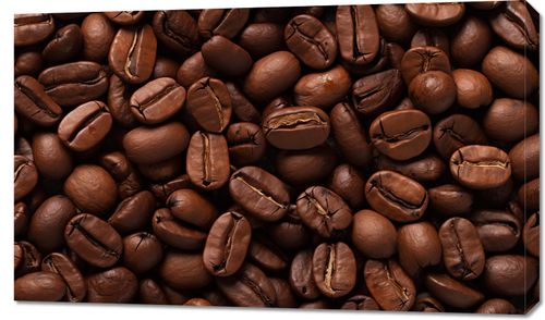 Obraz z serii wnętrza zatytułowany Esencja Aromatu, prezentuje zbliżenie na bogato teksturalne ziarna kawy, które wypełniają całą powierzchnię obrazu. Każde ziarno, z jego lśniącym brązowym odcieniem i wyraźnymi liniami, opowiada historię głębokiego smaku i intensywnego aromatu. Kompozycja, w której ziarna są tak blisko siebie, tworzy wizualną kontynuację, sugerując bogactwo i pełnię doświadczenia, jakie kawa dostarcza. Ten obraz idealnie nadaje się do miejsc, w których kawa jest nie tylko napojem, ale rytuałem i pasją, takich jak kawiarnie, przestrzenie do degustacji kawy, a nawet domowe kuchnie, gdzie może inspirować do chwili przerwy i cieszenia się małymi przyjemnościami życia.