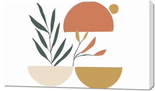 Obraz z serii boho zatytułowany Przekwit Tonacji.Obraz łączy prostotę z naturą, przedstawiając abstrakcyjne roślinne formy na tle geometrycznych kształtów. Paleta kolorów w tonacjach ziemi i spokojnych zielonych oraz pomarańczowych odcieniach, razem z kształtem przypominającym wschodzące słońce, wywołuje poczucie spokoju i nowego początku. Dzieło to idealnie nadaje się do przestrzeni, w których dominuje jasność i naturalność, takich jak skandynawskie wnętrza, miejsca odpoczynku lub przestrzenie pracy, które cenią sobie prostotę i harmonię. Może wprowadzić do pomieszczenia elementy natury w subtelny, uporządkowany sposób.