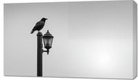 Obraz z serii wnętrza zatytułowany Samotny Postój Kruka. Prezentuje on sylwetkę kruka spoczywającego na klasycznej latarni ulicznej, uchwyconą w monochromatycznej palecie szarości. Ten spokojny, lecz sugestywny obraz jest symbolem refleksji i tajemnicy, doskonale wpisując się w klimat współczesnych przestrzeni miejskich. Praca ta z pewnością stanie się wyrazistym dodatkiem do nowoczesnych wnętrz, takich jak lofty czy minimalistyczne salony, a także wniesie element zastanowienia do przestrzeni publicznych takich jak galerie, kawiarnie i biblioteki, gdzie odosobnienie miesza się z miejskim zgiełkiem.