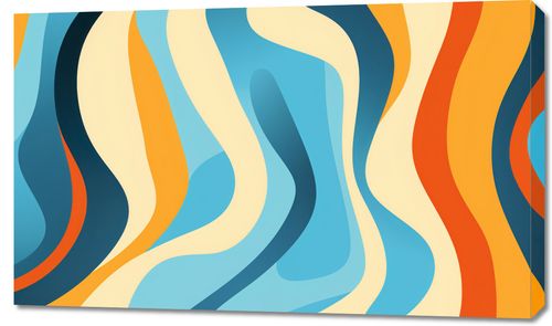 Obraz z serii abstrakcja zatytułowany Tańczące Fale. Kolorowe pasma falujące w rytmie niewidzialnej melodii, tworząc kalejdoskop błękitów, pomarańczy i beżów. Te meandryczne wzory przypominają wodne tanecznice, które wirowałyby w rytmie letniego brzasku. Ciepłe i chłodne tony kontrastują ze sobą, nadając obrazowi głębi i dynamiki. Będzie idealnym wyborem dla nowoczesnych apartamentów nad morzem, czy też kawiarni o śródziemnomorskim klimacie.