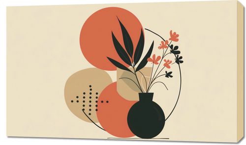 Obraz z serii minimalistyczne zatytułowany Wazon z Kwiatami. To dzieło sztuki to elegancka kompozycja przedstawiająca czarny wazon z roślinami o liściach w kolorze ciemnozielonym i delikatnymi kwiatami w odcieniach pomarańczy i różu. Tło jest utrzymane w pastelowej palecie barw, co nadaje całości delikatności i ciepła. Motyw jest prosty, lecz wyrafinowany, z subtelnymi akcentami kolorystycznymi. Ten obraz będzie doskonałym dodatkiem do wnętrz urządzonych w stylu skandynawskim, gdzie prostota i naturalność są kluczowe. Pięknie uzupełni przestrzeń ożywioną drewnianymi meblami, neutralnymi tkaninami i innymi naturalnymi elementami. Można go zawiesić w salonie, jadalni lub sypialni, gdzie doda odrobiny koloru nie zakłócając harmonii wnętrza.
