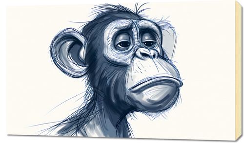 Obraz z serii wnętrza zatytułowany Zaduma. Prezentuje wyrazisty, monochromatyczny portret małpy z wyjątkowo ludzkim wyrazem twarzy, który wyraża głęboką refleksję. Subtelne detale i delikatne cieniowanie twarzy podkreślają emocjonalną głębię i osobowość przedstawionej postaci. Styl graficzny łączy w sobie elementy realizmu i kreskówki, co nadaje ilustracji lekkości, mimo jej poważnego nastroju. Ten obraz idealnie nadaje się do przestrzeni, które szukają dekoracji z charakterem, może to być salon, biblioteka, gabinet czy pokój młodzieżowy. Wprowadza on element introspekcji i jest zaproszeniem do kontemplacji, dodając wnętrzu głębi i wyjątkowego nastroju.
