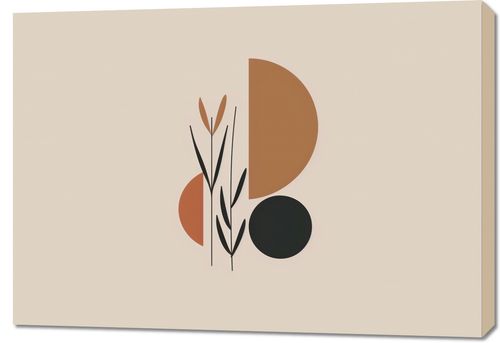 Obraz z serii boho zatytułowany Harmonijna Więź. Grafika jest esencją prostoty i natury uchwyconej w geometryczne formy. Linie przypominające delikatne źdźbła traw czy gałązki łączą się z organicznymi kształtami w odcieniach brązu, pomarańczy i czerni, tworząc wyrafinowany, naturalny motyw. Ta redukcja do najprostszych elementów wywołuje spokój i zrównoważenie. To dzieło doskonale odnajdzie się w przestrzeniach, gdzie dominuje spokój i prostota. Idealnie pasuje do minimalistycznych biur, eleganckich pokoi gościnnych lub jako wyrafinowany element dekoracyjny w modnych restauracjach. Może też dodać subtelnej, naturalnej elegancji do skandynawsko urządzonych mieszkań.