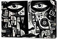 Obraz z serii abstrakcja zatytułowany Labirynt Myśli. Intrygujące oczy spoglądające z głębi obrazu są otoczone złożonymi wzorami i symbolami, które łączą się, tworząc enigmatyczny portret. Czarno-białe barwy kontrastują ze sobą, dodając dziełu intensywności i głębi. Złożoność wzorów symbolizuje skomplikowane myśli i emocje, które kryją się za ludzkim spojrzeniem. Świetnie sprawdzi się w nowoczesnych biurach, galeriach sztuki oraz w przestrzeniach przeznaczonych dla miłośników abstrakcyjnej ekspresji.