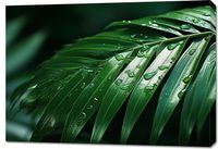 Obraz z serii natura zatytułowany Żywa Łagodność, przedstawia szczegółowe zbliżenie na liście palmy w odcieniach żywej zieleni, oświetlone promieniami słońca przenikającymi przez ich szpary. Gładkie i lśniące liście, z delikatnymi kroplami wody na ich powierzchni, tworzą poczucie ruchu i dynamiki, podczas gdy ich kontrastujące linie i formy wnoszą element struktury i elegancji. Delikatne światło i cienie na liściach, w połączeniu z bogatą paletą zieleni, wywołują uczucie spokoju oraz bliskości z naturą. Ta fotograficzna kompozycja mogłaby doskonale uzupełnić wnętrza, które cenią naturalność i organiczną estetykę, takie jak eko-salon, przestrzeń do jogi lub biura koncentrujące się na zrównoważonym rozwoju i ekologicznych inicjatywach.