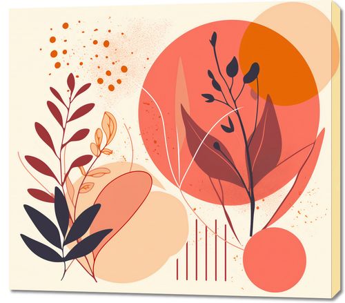Obraz z serii minimalistyczne zatytułowany Ciepłe Popołudnie. Grafika ta przedstawia estetyczne roślinne motywy na tle stylizowanych kształtów w ciepłej palecie barw, łącząc odcienie czerwieni, pomarańczy i beżu. Elementy takie jak kropki i linie dodają tekstury i dynamiki, tworząc wrażenie ruchu i lekkości. Ten obraz idealnie komponuje się z wnętrzami, które czerpią inspiracje z natury, wykorzystując jej motywy i barwy. Jego ciepłe tony będą doskonale pasować do salonów, pokoi relaksacyjnych czy nawet nowoczesnych biur, gdzie może dodać odrobinę spokoju i domowego ciepła.