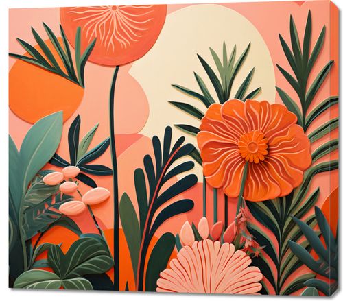 Obraz z serii natura zatytułowany Koralowy Ogród. Zachwycające, koralowe kwiaty wyrastają na pierwszy plan, podkreślane delikatnymi białymi liniami tworzącymi ich unikalne wzory. Tło w odcieniach pastelowego różu i kremu dodaje kompozycji głębi i ciepła. Złożoność i różnorodność roślin w obrazie dodaje mu nuty ekstrawagancji i wyjątkowości. Świetnie sprawdzi się w modnych kawiarniach, butikach z odzieżą damską oraz w przestrzeniach spa o relaksującym charakterze.