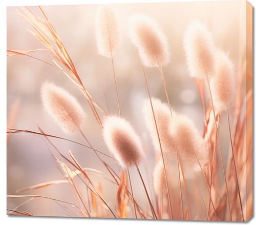 Obraz z serii natura zatytułowany Kwiaty Słońca. Na obrazie uchwycono delikatne, puszyste trawy, które delikatnie kołyszą się w ciepłym świetle zachodzącego słońca, nadając całości aura spokoju i harmonii. Pastelowa paleta barw, z dominującymi odcieniami różu i złota, przynosi uczucie łagodności i relaksu. Obraz ten będzie idealnym akcentem dla każdego wnętrza, poszukującego dodatku subtelności oraz naturalnej elegancji, szczególnie polecany jest do salonu spa, salonów kosmetycznych, poczekalni, a także jako ozdoba w domowych przestrzeniach wypoczynkowych czy sypialniach, gdzie chcemy wprowadzić elementy relaksującej natury.