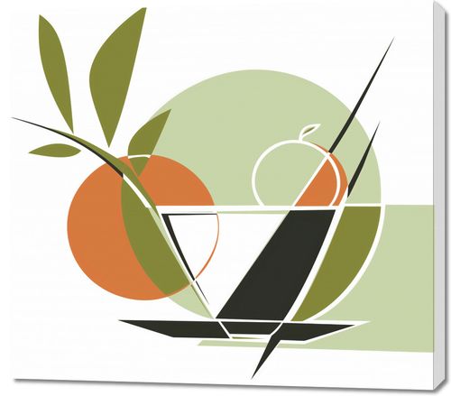 Obraz z serii minimalistyczne zatytułowany Owocowa Herbata. Prezentuje on wyrafinowaną grę form i kształtów, które przywodzą na myśl świeżość i soczystość owoców. Gładkie krzywizny i ostre linie łączą się tworząc nowoczesną kompozycję w palety kolorów zieleni, pomarańczy oraz czerni na delikatnym tle. Obraz ten doskonale wpasuje się w jasne kuchenne wnętrza, jadalnie lub nowoczesne przestrzenie kawiarniane, gdzie może stanowić żywy i pobudzający akcent. Jest to również idealny wybór do wnętrz, które poszukują lekkiego, ale wyrazistego elementu dekoracyjnego, dodającego charakteru i żywego ducha natury.