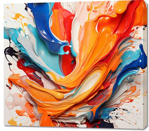 Obraz z serii abstrakcja zatytułowany Taneczne Fale. Wybuch jaskrawych barw, które splatają się w nieprzewidywalnych wzorach, przypominających taniec płynnych farb. Intensywne odcienie niebieskiego, czerwonego i pomarańczowego kontrastujące z delikatnymi akcentami bieli, dodają obrazowi dynamiki i życia. Świetnie sprawdzi się w nowoczesnych galeriach sztuki, studiach projektowych oraz przestrzeniach kreatywnych.
