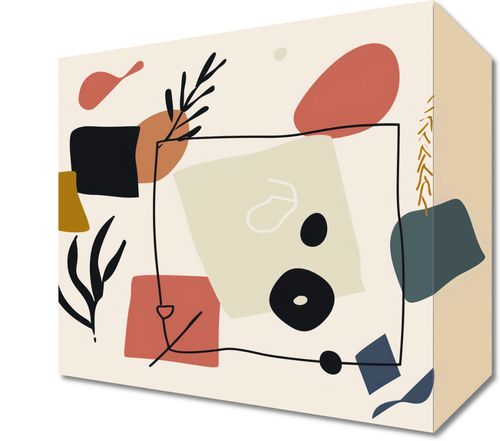 Obraz z serii minimalistyczne zatytułowany Abstrakcyjny Dialog. Ta grafika składa się z zespołu prostej, ale wyrafinowanej kolekcji kształtów i linii, tworząc dynamiczną, ale zbalansowaną kompozycję w ciepłej palecie kolorystycznej, w której dominują odcienie beżu, czerni, ochry i czerwieni.Obraz ten świetnie wkomponuje się w przestrzenie, gdzie dominuje nowoczesne wzornictwo i sztuka. Jest doskonały do minimalistycznych wnętrz biurowych lub mieszkalnych, które chcą dodać charakteru bez przytłaczania. Może także stanowić subtelny akcent w przestrzeniach kreatywnych, takich jak studia projektowe czy artystyczne kawiarnie, dodając im współczesnego uroku.