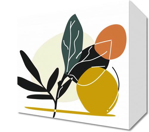Obraz z serii minimalistyczne zatytułowany Elegancka Flora. Przedstawia on abstrakcyjną kompozycję roślinnych form na tle geometrycznych kształtów, tworząc przestrzeń pełną lekkości i harmonii. Kolorystyka oscyluje wokół spokojnych tonów żółci, czerwieni i głębokiej czerni, które razem wyrażają równowagę i nowoczesną estetykę. Obraz ten będzie doskonałym uzupełnieniem dla nowoczesnych wnętrz domowych, biurowych lub komercyjnych, które chcą wprowadzić elementy natury w stylizowanej, artystycznej formie. Idealnie nadaje się do przestronnych salonów, gabinetów lub jako wyrafinowany akcent w minimalistycznych, dobrze oświetlonych pomieszczeniach.