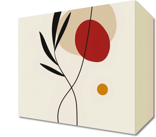 Obraz z serii boho zatytułowany Esencja Przerysu to przykład sztuki minimalizującej formę do najprostszej esencji. Delikatne linie roślin w kolorze czarnym wyginają się rytmicznie na tle beżowych i czerwonych kół, które mogą symbolizować słońce lub księżyc w różnych fazach, a mała, złocista kropka nadaje kompozycji subtelnego akcentu. Ten obraz to esencja nowoczesnego designu, który będzie pasował do każdego wnętrza ceniącego sobie czystość linii i spokój barw. Idealny do stonowanych przestrzeni takich jak minimalistyczne salony, eleganckie biura lub jako punkt skupienia w jadalni.
