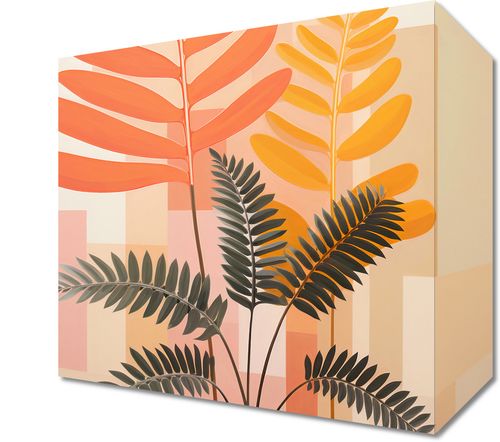 Obraz z serii wnętrza zatytułowany Harmonia Natury. Geometryczne kształty tła w delikatnych pastelowych odcieniach łączą się z organicznymi formami liści w energetycznych barwach czerwieni, żółci i zieleni. Ciemna, minimalistyczna waza stanowi mocny akcent, który spaja całość kompozycji. Ta unikalna kombinacja klasycznych i nowoczesnych elementów tworzy wizualną opowieść o równowadze i elegancji natury w urbanistycznym środowisku. Świetnie sprawdzi się w nowoczesnych biurach, w przestrzeniach artystycznych galerii czy w minimalistycznych loftach, gdzie design łączy się z naturą.