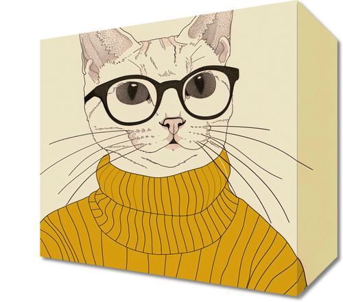 Obraz z serii abstrakcja zatytułowany Intelektualista to urocze przedstawienie kota ubranego w stylowy, żółty golf, dopełnionego okularami w intelektualnym stylu. Ilustracja charakteryzuje się subtelną linią i pastelową kolorystyką, co nadaje jej delikatny i stylowy wygląd. Okulary z grubymi oprawkami nadają kotu wyraz powagi i inteligencji, podczas gdy żółty sweter wskazuje na wyrafinowany gust. Całość kompozycji jest zabawna, ale jednocześnie elegancka, sprawiając, że obraz ten jest idealny dla tych, którzy cenią sobie humor połączony z klasą. Doskonale nadaje się do nowoczesnych przestrzeni mieszkalnych, pokoi młodzieżowych, biur lub jako dekoracja w księgarniach i kawiarniach.