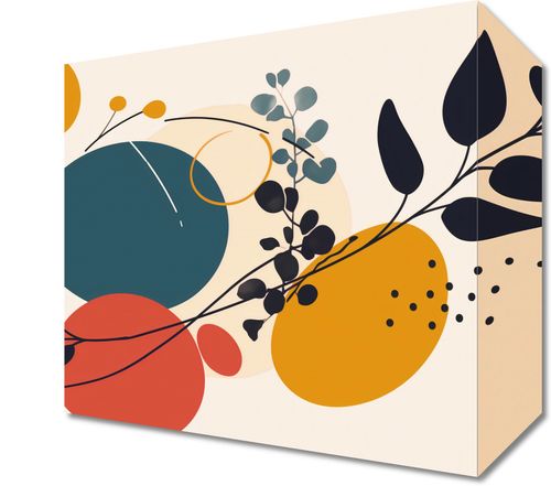 Obraz z serii minimalistyczne zatytułowany Kolaż Przyrody. Grafika ta łączy organiczne kształty i roślinne motywy z geometrycznymi figurami. Prezentuje bogate połączenie kolorów - od głębokiego granatu przez czerwień, musztardowy żółty po delikatne beże. Wyróżnia się przez obecność roślinnych sylwetek na pierwszym planie, które nadają kompozycji naturalnego charakteru.Ten obraz będzie wspaniałym dodatkiem do wnętrz, gdzie panuje spokój i równowaga. Jego stonowana, ale wyrazista kolorystyka sprawi, że będzie doskonałym uzupełnieniem przestrzeni skandynawskich, minimalistycznych, a nawet boho. Wydaje się być idealnym wyborem do salonu, sypialni lub miejsca pracy dla osób ceniących sobie połączenie sztuki i natury, gdzie mógłby stać się centralnym elementem dekoracyjnym.