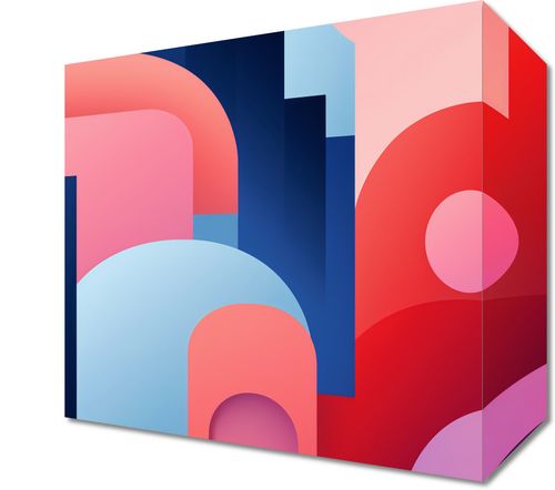 Obraz z serii geometria zatytułowany Miasto Kolorów. Złożone z różnorodnych kształtów i tonacji, przedstawiające wyimaginowane miasto pełne zakamarków i mostów. Błękitne wieżowce kontrastują z ciepłymi różami i czerwieniami, tworząc uczucie ruchu i dynamiki. Gładkie linie i łuki wprowadzają uczucie spokoju w środku urbanistycznego zgiełku. Doskonale odnajdzie się w nowoczesnych biurach oraz w przestrzeniach artystycznych galerii.
