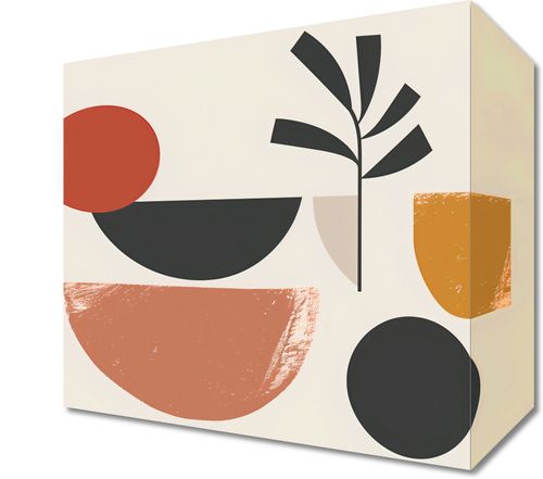 Obraz z serii boho zatytułopwany Ogród Woli.Obraz jest abstrakcyjnym przedstawieniem ogrodu, gdzie geometryczne formy i roślinne motywy łączą się w harmonijną całość. Proste kształty w odcieniach czerwieni, czerni i beżu odzwierciedlają naturalne elementy, takie jak kwiaty i słońce, a czyste linie roślinnych sylwetek wprowadzają do kompozycji żywiołowość i dynamikę. To dzieło świetnie wkomponuje się w nowoczesne, jak i tradycyjne przestrzenie, wprowadzając żywioł natury w uporządkowaną, estetyczną formę. Idealnie nadaje się do salonów, gabinetów czy pokoi relaksacyjnych, gdzie jego ciepłe barwy i proste formy mogą stworzyć inspirujące otoczenie dla odpoczynku i kreatywności.
