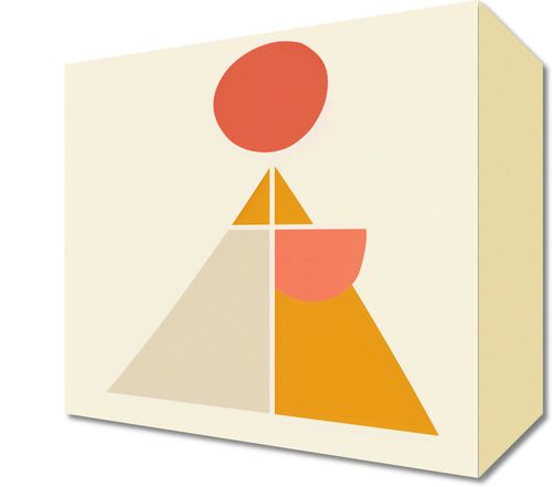 Obraz z serii boho zatytułowany Piramida Równowagi.Na obrazie widnieje uproszczona, ale wyrazista kompozycja geometryczna, składająca się z trójkąta podzielonego na mniejsze sekcje, półkola oraz kółka na szczycie. Kolorystyka utrzymana w pastelowych odcieniach beżu, pomarańczy i czerwieni, wprowadza poczucie ciepła i spokoju.Dzieło idealnie wpisuje się w minimalistyczne i nowoczesne przestrzenie, stanowiąc zarazem element medytacyjny jak i dekoracyjny. Dopełnieniem mogą być proste, drewniane ramy, które podkreślą naturalność prezentowanej formy. Jest to obraz, który może znaleźć swoje miejsce w domowym biurze, salonie, a nawet w przestrzeniach komercyjnych, takich jak kawiarnie lub poczekalnie.