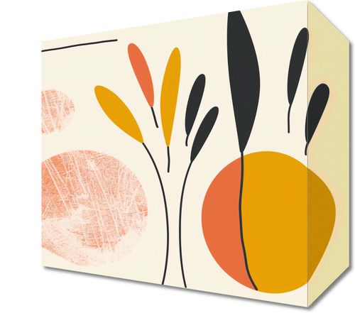 Obraz z serii boho zatytułowany Słoneczne Refleksy.Obraz czerpie z esencji natury i prostoty, przedstawiając stonowane, ale zarazem żywe kształty i linie roślin. Geometryczne kształty w ciepłej palecie barw - od głębokiego pomarańczu do delikatnego żółcienia - są wyróżnione na tle stonowanego beżu, tworząc wrażenie słońca i jego łagodnego światła rozpraszającego się w naturze. Dzieło to będzie pięknie komponować się z jasnymi, przestronnymi wnętrzami, wnosząc do nich poczucie ciepła i optymizmu. Idealnie nadaje się do dekoracji ściennej w salonach, jadalniach lub przestrzeniach oczekujących, gdzie może dodać odrobinę życia bez dominowania nad całością aranżacji. Zapewni lekki, ale wyrazisty akcent, który może inspirować i przynieść radość każdego dnia.