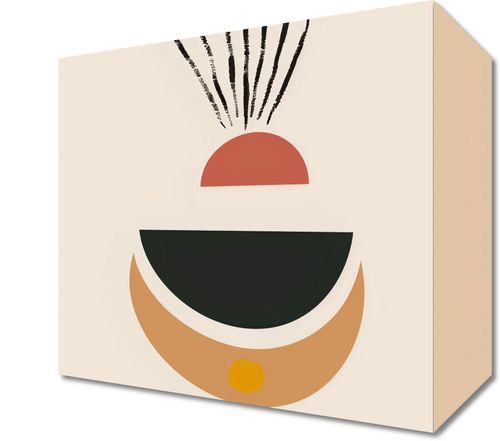 Obraz z serii boho zatytułowany Spójna Refleksja.Grafika ukazuje abstrakcyjną kompozycję geometrycznych kształtów w spójnej, ciepłej palecie barw, sugerującą delikatność i równowagę. Cechą charakterystyczną są wydłużone, smukłe linie wychodzące z półkola na górze, które mogą przypominać promienie słońca czy roślinne motywy. Ten obraz doskonale wpasuje się w nowoczesne i minimalistyczne przestrzenie, takie jak jadalnie, salony, a nawet kreatywne przestrzenie pracy, gdzie może stanowić spokojny punkt skupienia i inspirować do przemyśleń.
