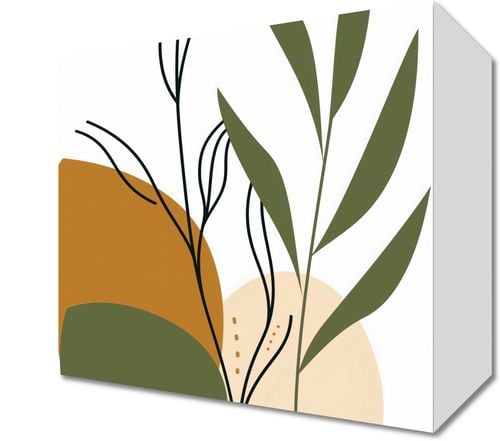 Obraz z serii minimalistyczne zatytułowany Subtelna Fauna. Na obrazie widzimy harmonijną kompozycję organicznych kształtów i delikatnych linii, które razem tworzą stylizowany obraz roślinności. Paleta barw jest spokojna i ziemista, z dominującymi odcieniami oliwkowej zieleni, miodowego beżu i głębokiego rdzawego brązu. Subtelne detale w postaci małych punktów i cieniutkich linii dodają dziełu lekkości i finezji, zapraszając do kontemplacji i wyciszenia.Ten obraz to doskonały wybór do wnętrz, gdzie chcemy wprowadzić elementy natury w subtelnej, uproszczonej formie. Pasować będzie zwłaszcza do jasnych, przestronnych pomieszczeń, takich jak skandynawskie salony, minimalistyczne sypialnie czy biura o naturalistycznym, eco-friendly designie.