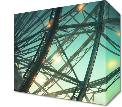 Obraz z serii wnętrza zatytułowany Światła Molocha. Na tym zachwycającym zdjęciu wielka konstrukcja diabelskiego młyna jest uchwycona z nietypowej perspektywy, ukazując skomplikowaną sieć metalowych prętów oświetlonych setkami migoczących światełek. Złoty zachód słońca w tle nadaje scenie ciepły, oniryczny nastrój. Ten obraz to pochwała inżynierskiego geniuszu i miejskiego życia, idealnie komponujący się w nowoczesnych przestrzeniach, takich jak biura, lofty, a także w przestrzeniach publicznych czy domowych salonach. Jest to również doskonała inspiracja dla tych, którzy cenią sobie miejską estetykę i nowoczesny design.