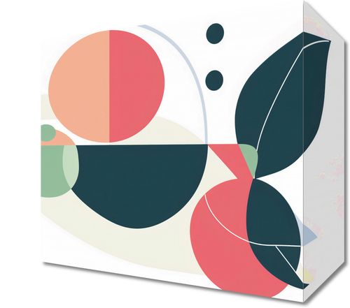 Obraz z serii minimalistyczne zatytułowany Symfonia Wizji. Ta grafika wykorzystuje proste, lecz wyrafinowane kształty geometryczne i roślinne formy, które razem tworzą płynną i spójną kompozycję. Kolorystyka jest subtelna i harmonijna, łącząc pastelowe tony z akcentami głębokiej zieleni i czerwieni, co nadaje pracy delikatność i współczesny charakter. Obraz ten idealnie wpasuje się w nowoczesne wnętrza, które poszukują równowagi między prostotą a wyrafinowaniem. Dzięki swojej minimalistycznej estetyce może służyć jako spokojny akcent w przestrzeniach domowych, takich jak salon, sypialnia, lub jako elegancki element dekoracyjny w przestrzeniach komercyjnych i biurowych.