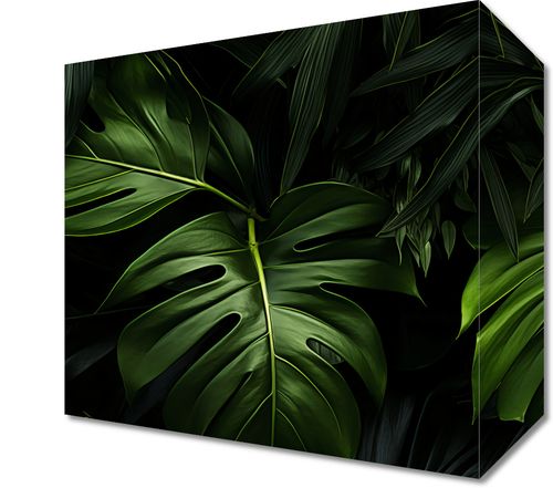 Obraz z serii natura zatytułowany Zielony Szept, przyciąga uwagę swoją głębią i bogactwem odcieni zieleni. Mieniące się liście monstery, połączone z subtelnymi, niemal abstrakcyjnymi formami innych roślin tropikalnych, tworzą kompozycję pełną życia i harmonii. Ta zieleń to synonim spokoju i regeneracji, a każdy detal podkreślony jest przez delikatne światło, które wydobywa tajemniczość i naturalne piękno roślin. Idealnie komponuje się w przestrzeniach współczesnych, które stawiają na ekologiczne i naturalne elementy dekoracyjne, jak również w miejscach publicznych, takich jak hotele, restauracje czy biura, gdzie może stanowić oazę relaksu i natury. Ta praca doskonale wpisuje się w potrzebę bliskości z przyrodą w zatłoczonych, miejskich wnętrzach.