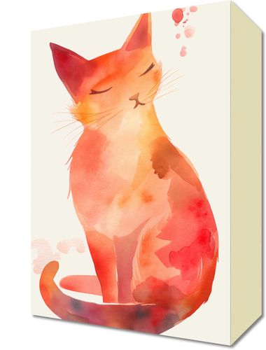 Obraz z serii wnętrza zatytułowany Akwarelowy Kot przedstawia akwarelową ilustrację spokojnego, zamyślonego kota. Kot zamyka oczy w zadowoleniu, a jego sylwetka płynnie przechodzi w bogatą paletę ciepłych odcieni czerwieni i pomarańczu, co nadaje dziełu wrażenie spokoju i ciepła. Delikatne plamy i rozmycia barw typowe dla akwareli tworzą wrażenie lekkości i przestrzeni, a jednocześnie podkreślają łagodność i spokojny nastrój obrazu. Jest to doskonały wybór dla tych, którzy pragną wprowadzić do swojego domu element relaksu i spokoju. Obraz ten idealnie wpasuje się w przestrzeń taką jak przytulna kawiarnia, zakątek do czytania w domowej biblioteczce lub pokój dziecinny, gdzie może inspirować do spokojnego snu i odpoczynku.